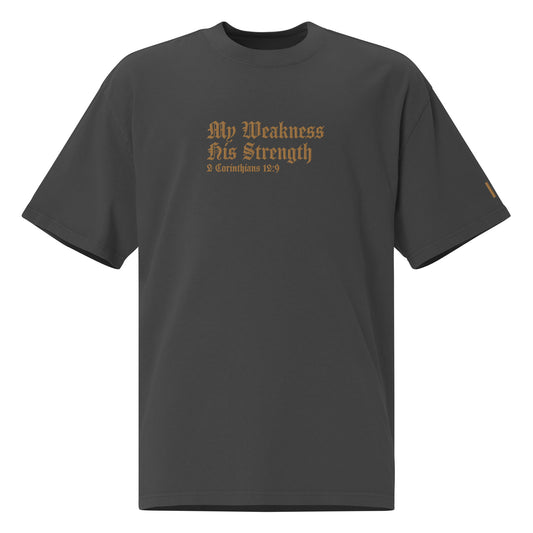 My Weakness His Strength (Gold Embroidered) Oversized faded t-shirt